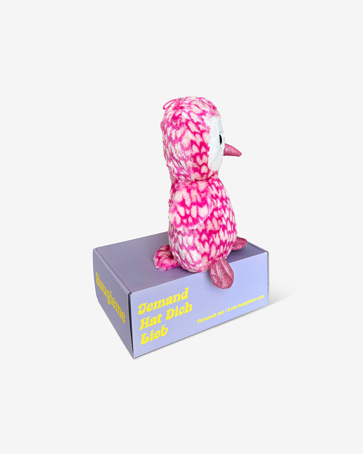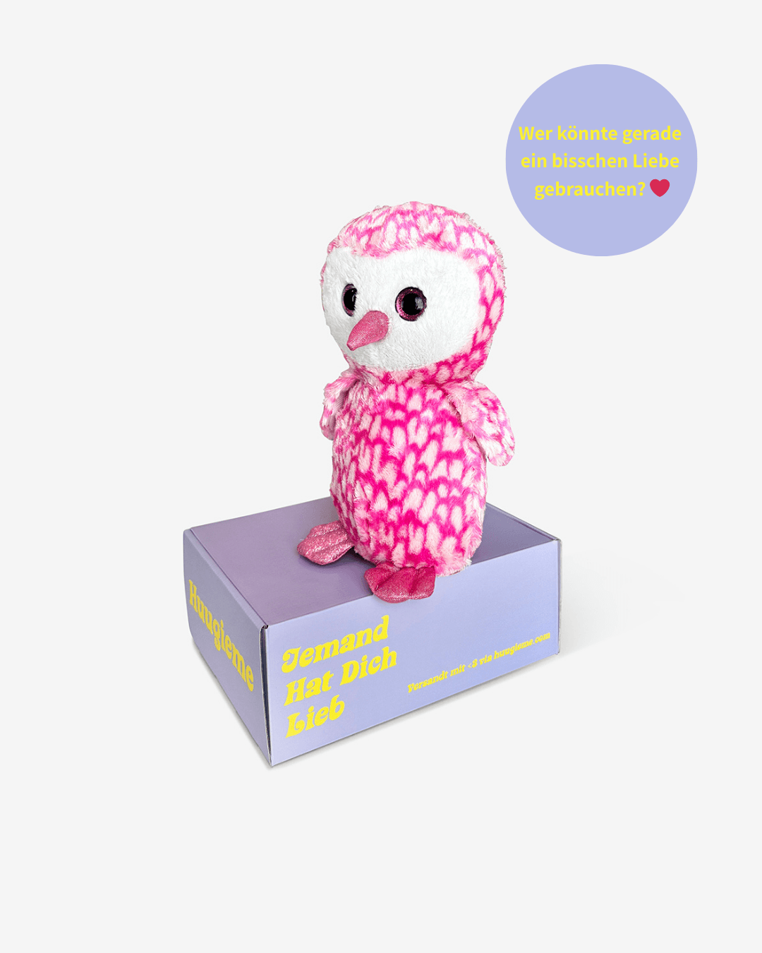 Huugieme ist ein Service mit dem du Kuscheltiere mit einer besonderen Notiz überall in Deutschland versenden kannst. Wähle ein Stofftier aus unserer Sammlung flauschiger Freundchen aus, wir fügen eine besondere Wertschätzende Notiz hinzu und liefern die Freude in unserer charakteristischen "Jemand Hat Dich Lieb"-Box aus.
