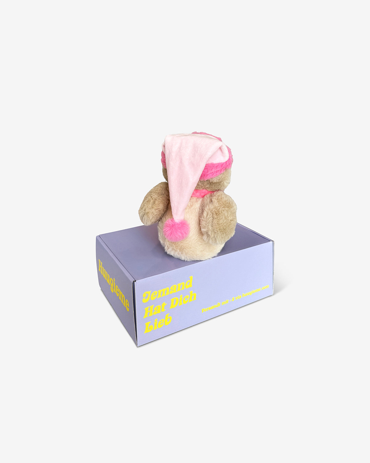 ✨ Der magische Moment beim Auspacken. Jedes Huugieme kommt in unserer einzigartigen Fliederfarben Box, mit gelber Aufschrift‚Jemand hat dich lieb‘.