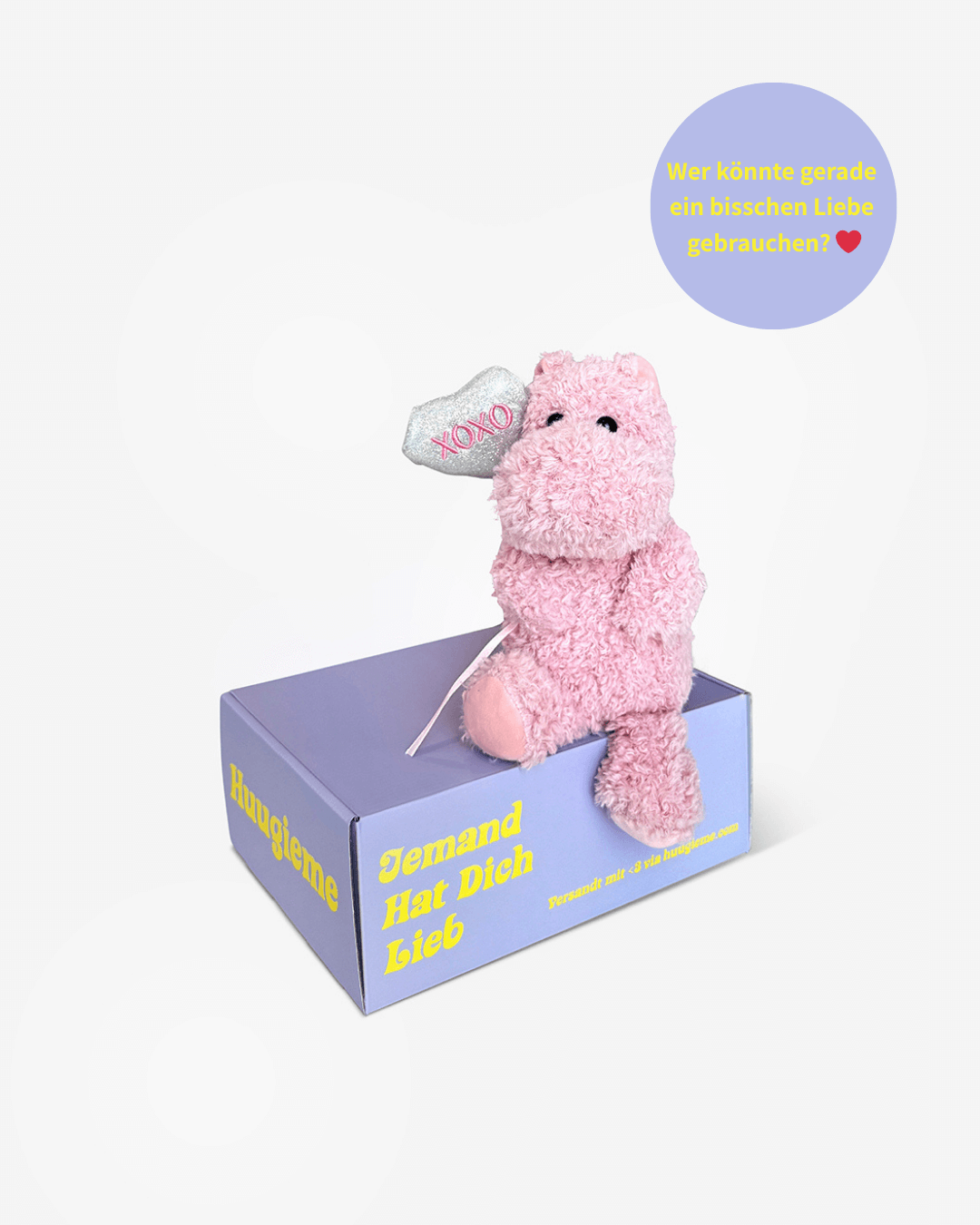 Huugieme ist ein Service mit dem du Kuscheltiere mit einer besonderen Notiz überall in Deutschland versenden kannst. Wähle ein Stofftier aus unserer Sammlung flauschiger Freundchen aus, wir fügen eine besondere Wertschätzende Notiz hinzu und liefern die Freude in unserer charakteristischen "Jemand Hat Dich Lieb"-Box aus.