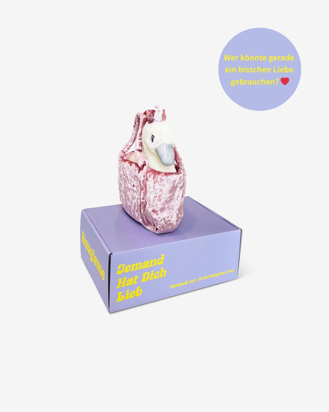 Huugieme ist ein Service mit dem du Kuscheltiere mit einer besonderen Notiz überall in Deutschland versenden kannst. Wähle ein Stofftier aus unserer Sammlung flauschiger Freundchen aus, wir fügen eine besondere Wertschätzende Notiz hinzu und liefern die Freude in unserer charakteristischen "Jemand Hat Dich Lieb"-Box aus.
